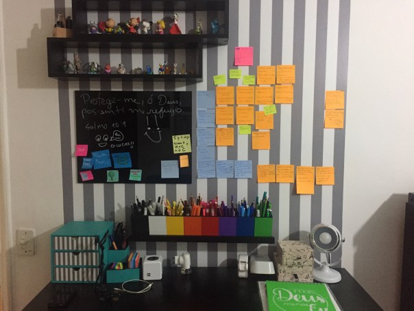 Depois de um tempo, de um extremo fui pro outro. Comprei um monte de canetas, lápis, papéis, cadernos e post-its. Além de fitas, cola, adesivos e por aí vai…