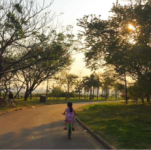 Minha pequena pedalando nessa ciclovia do parque me lembra momentos felizes e marcantes que já passamos ali em família e com amigos.